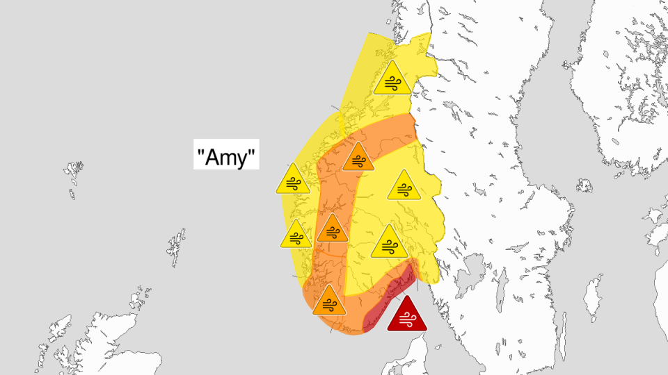 No kjem uvêret Amy: Sterk vind i vente Meteorologisk institutt (MET) har sendt ut varsel om sterk vind på gult og oransje nivå for heile Sør-Noreg, inkludert Bjørnafjorden kommune. Uvêret h...