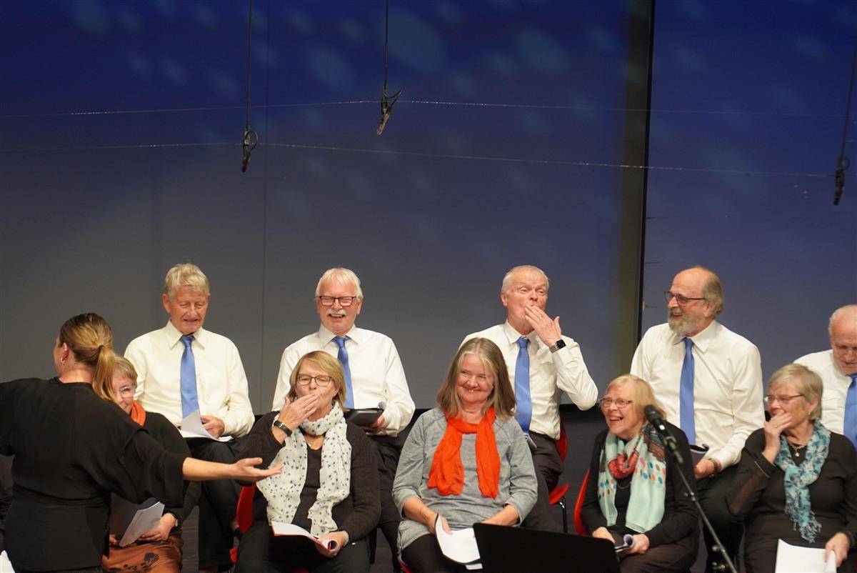 Det var høg stemning både blant deltakarar, frivillige og publikum på Bjørnafjorden demenskor sin konsert i Oseana i november.