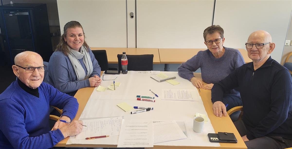 I sist møterunde slo Bjørnafjorden eldreråd og Råd for menneske med nedsett funksjonsevne (RMNF) seg saman for å kome med innspel til kommuneplanen sin arealdel (KPA). I grupper på tvers av råda svarte dei på konkrete spørsmål frå planavdelinga om tema dei meiner er viktig å ta inn i planarbeidet for å tilrettelegge for alle aldrar og funksjonsnivå. Frå v. Jonny Saltnes, Ingvild Jansen, Åse Gjerde og Ingemar Helland.